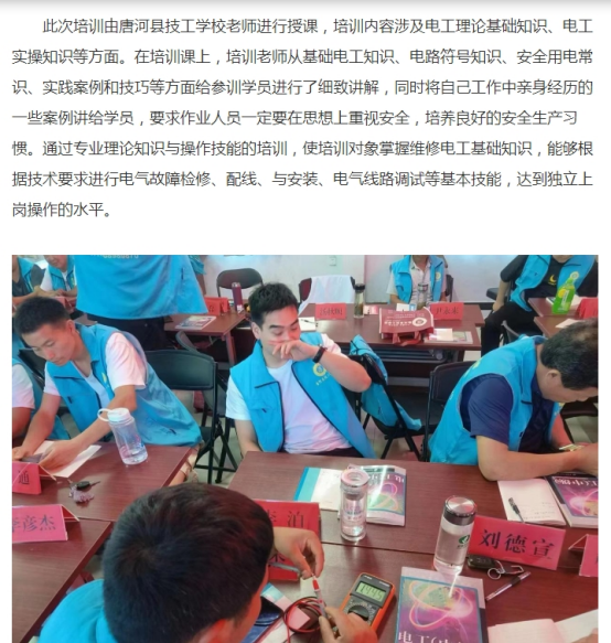 唐河县技工学校走进少拜寺镇:电工培训增技能 群众就业稳增收