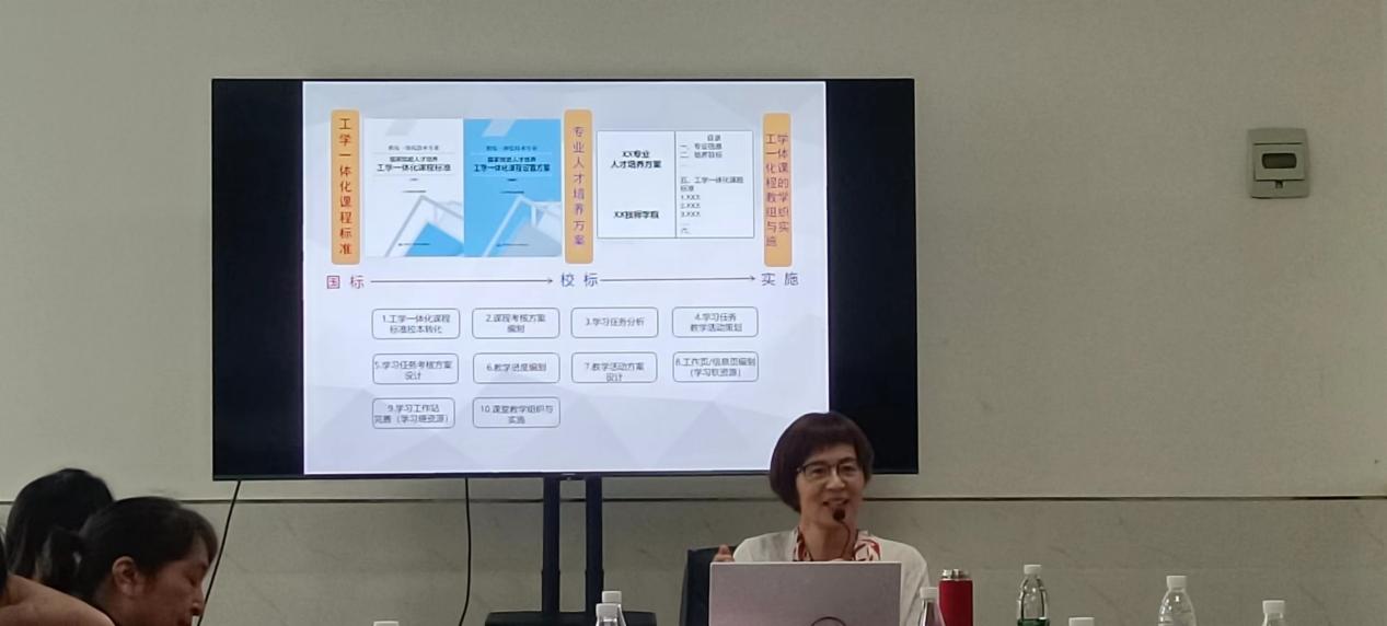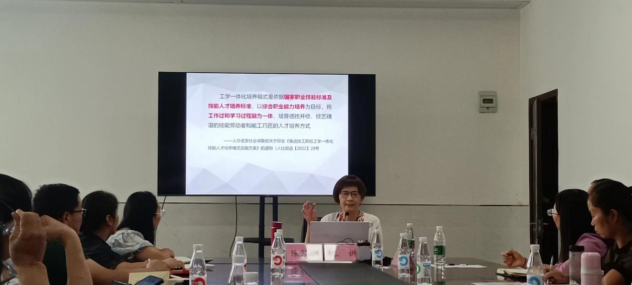 本次培训围绕工学一体化课程标准、课程教学方案设计、工学一体化技能人才培养模式建设、技工院校教师职业能力大赛等方面展开。陈彩凤教授通过工作过程、现场研学生动地展示了工学一体化课程教学的各个层面,为我校工学一体化教学改革提供了指导性、针对性和适用性的方法和路径。