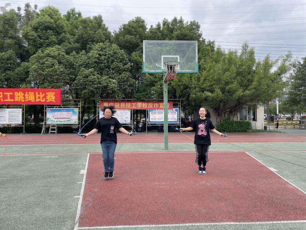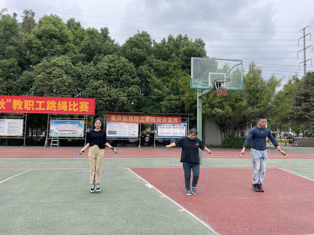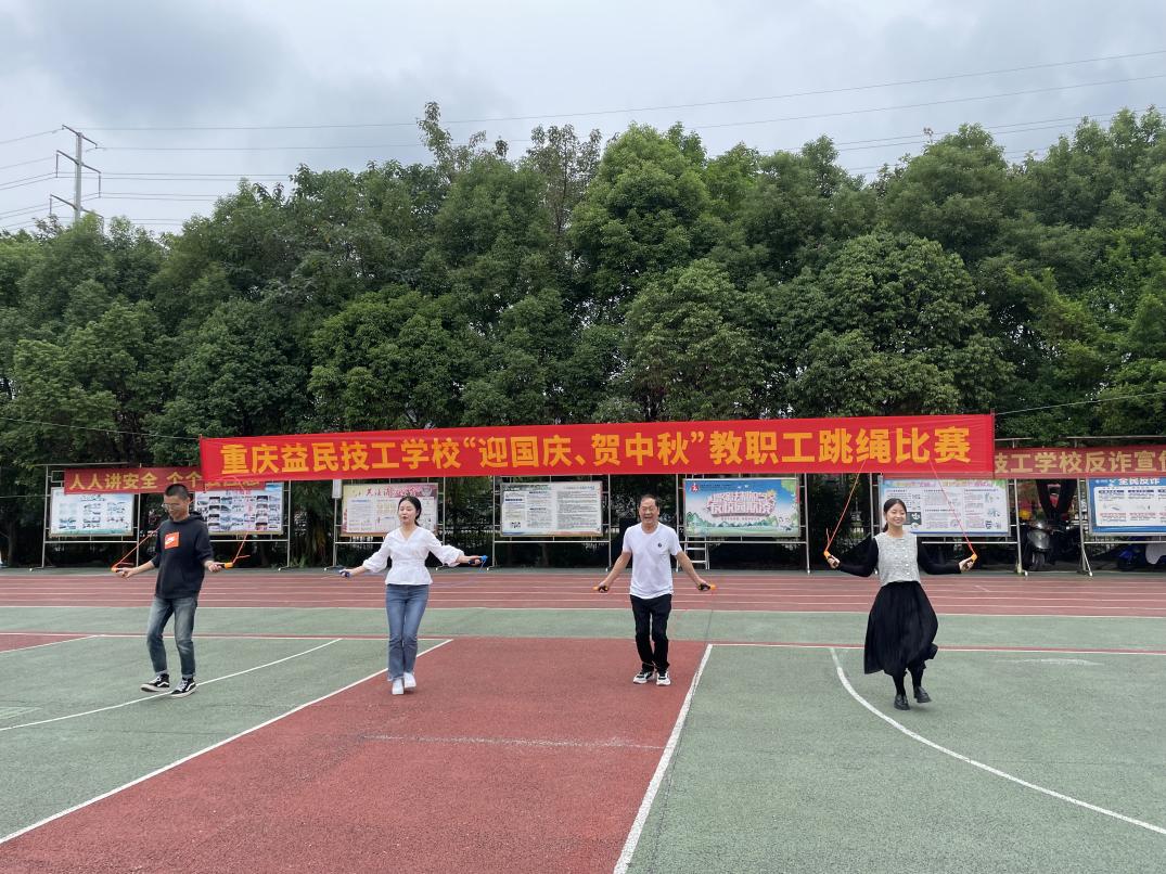 迎国庆、贺中秋!为丰富教职工业余文化生活,展现教职工精神风貌,增强教职工身体素质和团队凝聚力,9月28日下午,重庆益民技工学校工会组织开展了一场“迎国庆、贺中秋”为主题的教职工跳绳比赛活动。