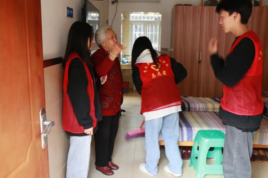 “老吾老以及人之老,幼吾幼以及人之幼”。进入敬老院,虽在年龄上有很大差距,但以爱之名架起的桥却是没有距离的,学生们搀扶老人走路锻炼、清洁房间卫生、和长辈们拉家常……一幅温馨和谐的画卷在敬老院徐徐展开。